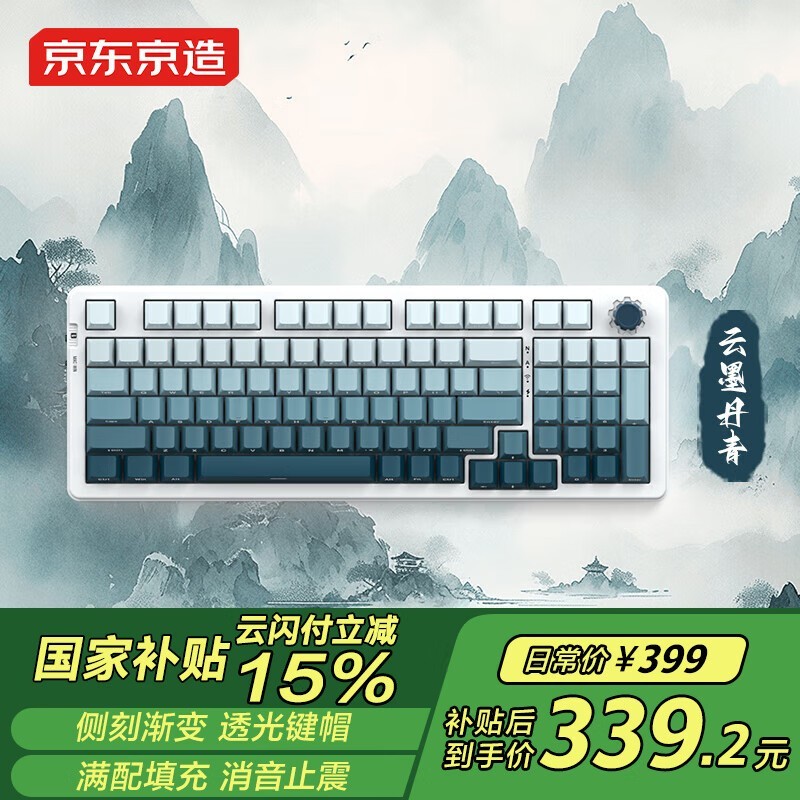 京东京造G96机械键盘TTC烈焰雪轴V2云墨丹青设计