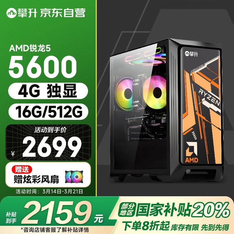 IPASON战神2台式电脑主机 AMD锐龙5-5600 RX550独显 稳定高效