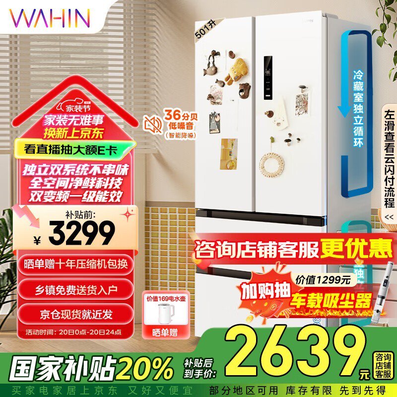 华凌多门法式526冰箱一级能效风冷全舱PT净味双系统母婴冰箱