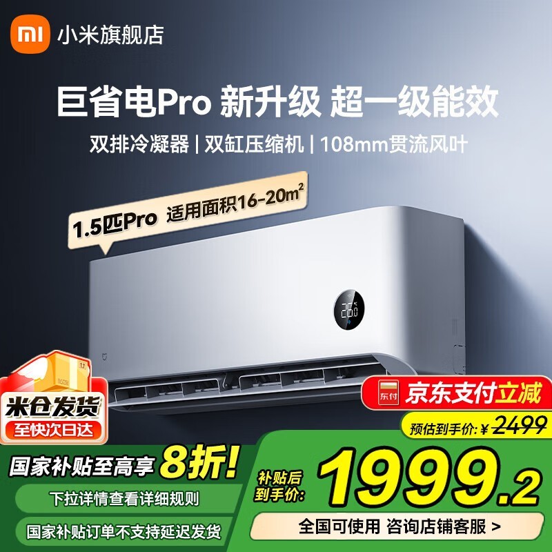 小米Xiaomi巨省电Pro系列空调1匹京东特惠1889元