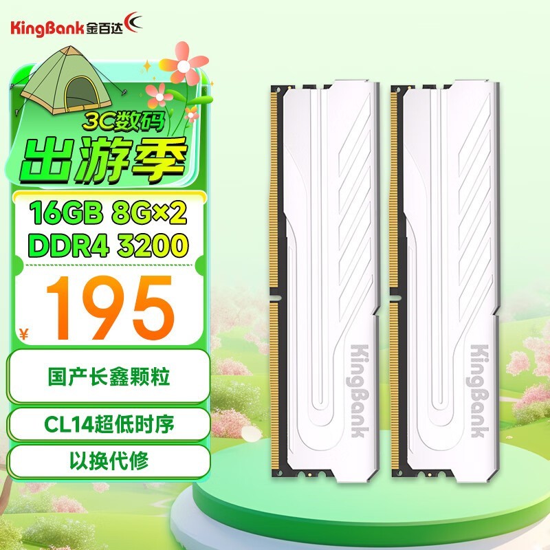 金百达银爵DDR4内存条16GB套装8GBx2京东仅195元好价