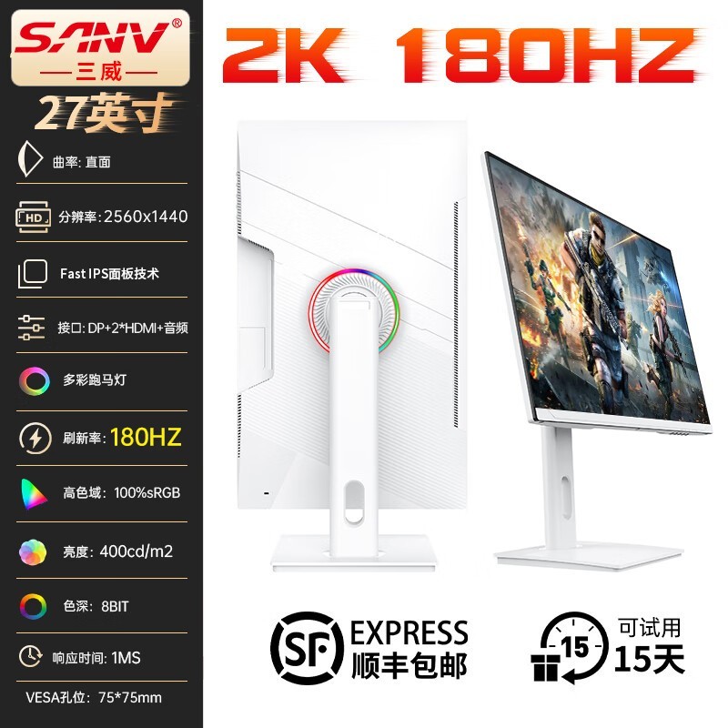 三威M270KCJ显示器27英寸2K高分165Hz刷新率仅809元