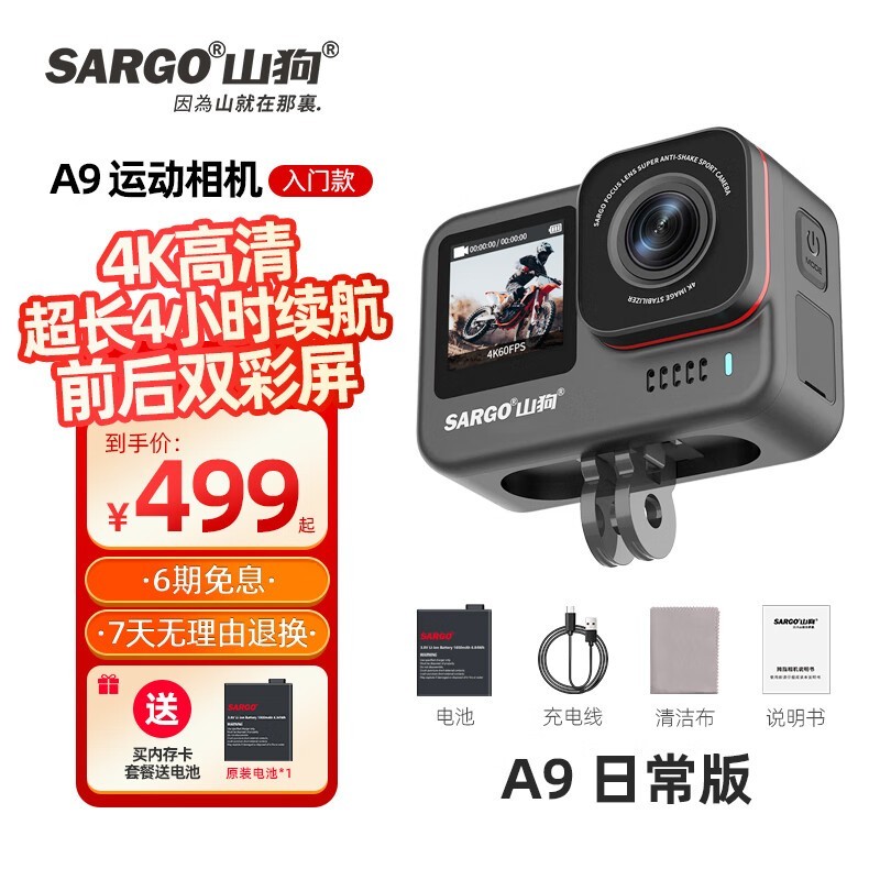 山狗A9运动相机4K超高清防抖头盔记录仪京东到手仅499元