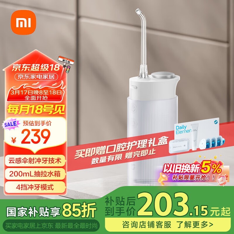 米家F400便携冲牙器双层水流清洁口腔好价166元
