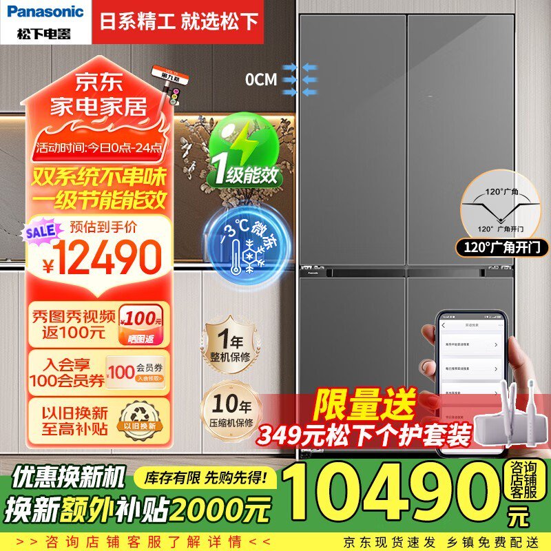 松下大海豹PLUS冰箱575L十字对开零嵌冷藏冷冻到手10290
