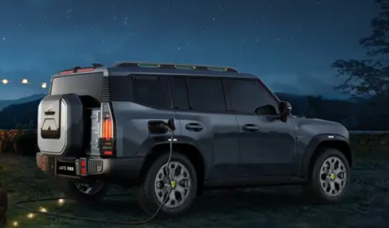 在外观设计上,捷途山海T2四驱荒野版延续了现款车型的方盒子风格,前格栅内部的JETOUR英文车标可以点亮,尾部配备电吸尾门和外挂式备胎,整体造型硬朗大气。
