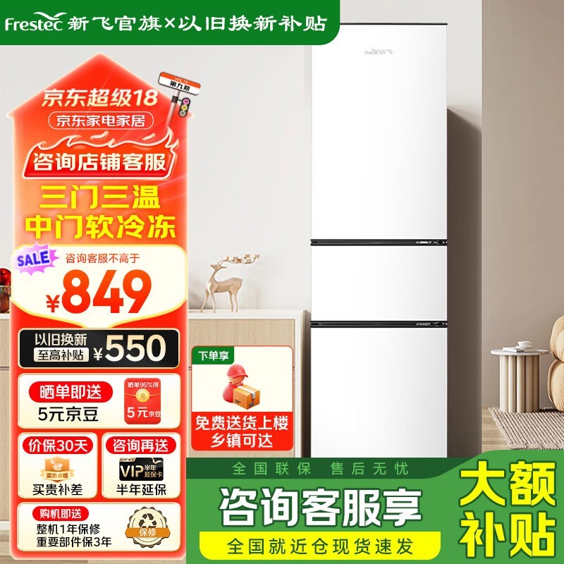 新飞三门冰箱BCD-207KM/W:超薄设计,节能高效,小空间大容量的理想储物伙伴