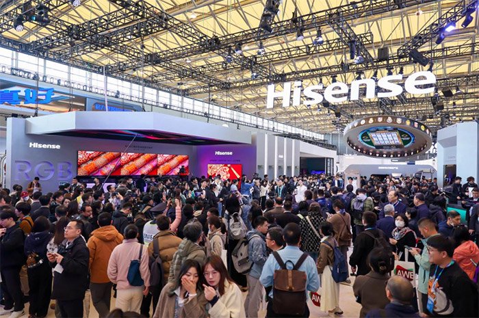 3月20日,2025年中国家电及消费电子博览会(AWE 2025)开幕。在W5展馆内,海信携全球首款116英寸RGB-Mini LED电视UX及旗下全阵容百吋产品重磅亮相,开启客厅WALL时代。