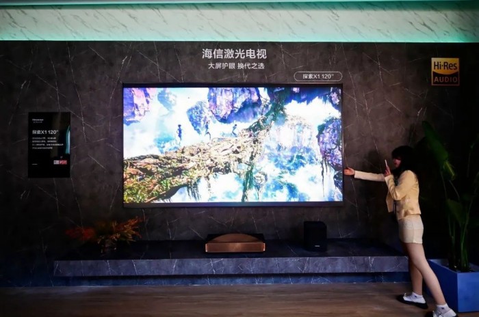 海信激光电视旗舰新品探索X1,不仅采用与电影院同源的“DLP数字影院放映技术”,拥有行业最高的110% BT.2020电影工业级色域,搭载了海信首创的光谱选择屏,亮度提升至1000nit,极大提升了大屏观影体验。