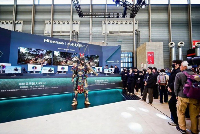作为行业首个拥有Micro LED芯片研发、驱动控制、精密封装、信号增强、画质还原五大核心技术体系的企业,海信还展出了全球首款自发光136吋Micro LED电视,以“尺寸自由化”“形态场景化”重新定义显示边界;同样吸睛的还有163吋可移动的Micro LED电视,厚度为行业最薄的24mm,支持自由拼接,最大可定制到271英寸。
