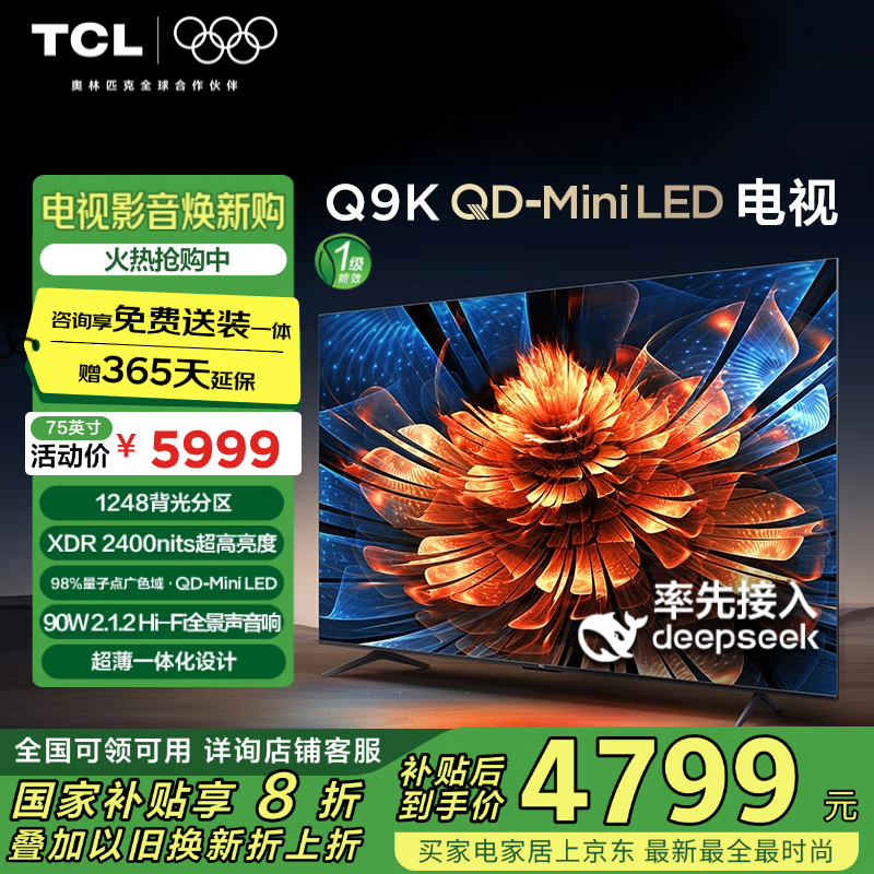 TCL 75Q9K电视促销,原价4986元到手3820元