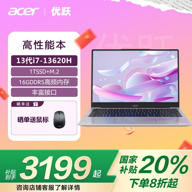 宏碁优跃14英寸笔记本京东优惠价3899元