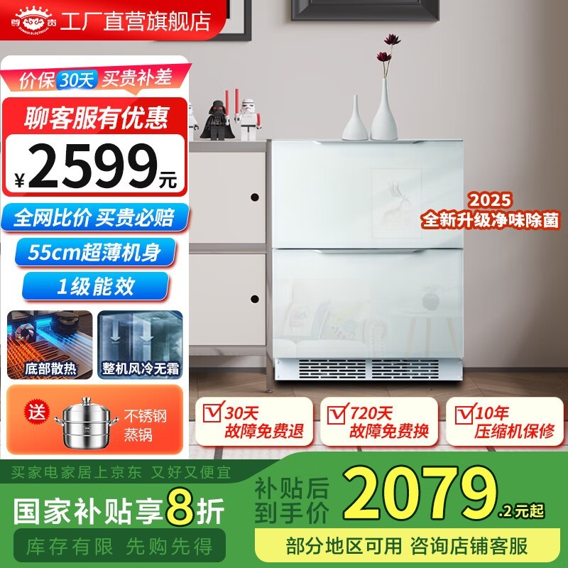 尊贵ZUNGUI嵌入式冰箱:55cm超薄变频设计,68L精致生活节能储藏专家