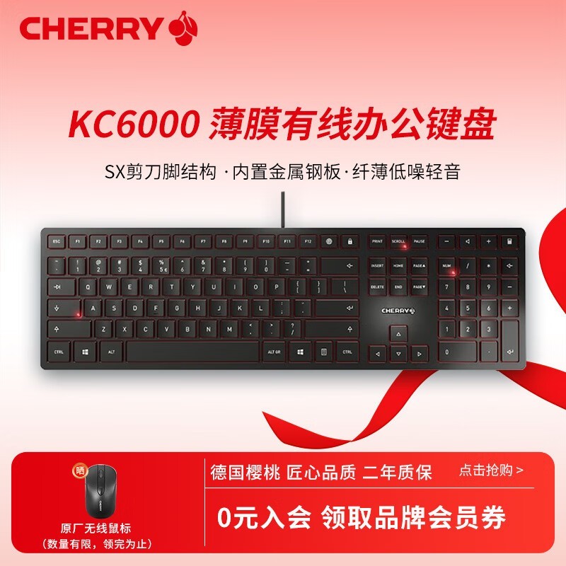 CHERRY KC6000薄膜键盘超薄静音舒适京东好价209元