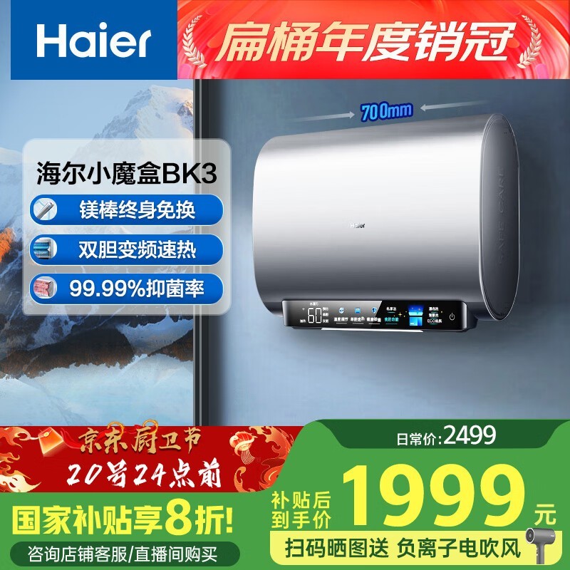 海尔Haier电热水器EC6003-BK3KU1储水式60L双胆双功率
