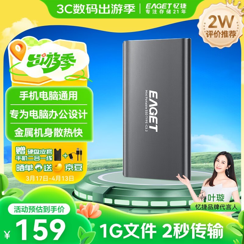 忆捷256GB Type-C USB3.2移动固态硬盘仅141元