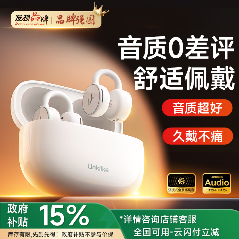 莅莱耳夹式蓝牙耳机骨传导运动跑步专用