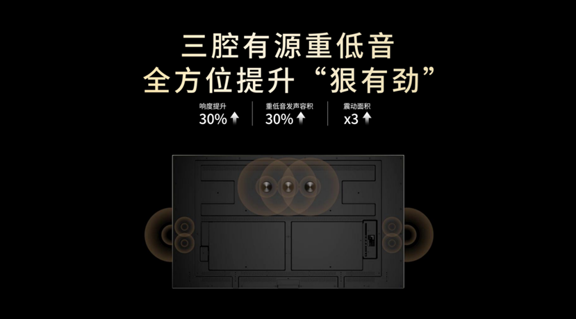 最后,好的音质加持是电视重要加分点。Q10Air是30mm内唯一内置三腔独立重低音的电视。配备的是三腔有源重低音,相比普通音响,它的震动面积增加了3倍、响度提升30%、重低音发声容积也提升30%,再配合专为追光系列定制的R6曲率声学设计,让它发出的不仅仅只是“声音”,更是从四面奔涌而来的“音瀑”。