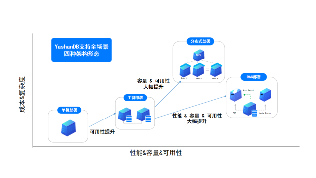 何谓“架构不变”?直白地说,也是数据库部署架构不变,YashanDB具备全场景的架构部署能力,支持单机/主备、共享集群、分布式等部署方式。针对高端核心场景,YashanDB通过自研聚合内存技术、集群文件系统、集群管理服务等原创突破性技术,成功构建共享集群的架构体系,以YashanDB共享集群为核心的数据库解决方案,已成为支撑核心场景IOE架构的至优之选!