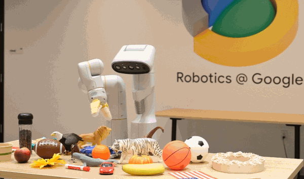 RT-2 是全球第一个控制机器人的视觉 - 语言 - 动作(VLA)模型。这个模型让机器人不仅能解读人类的复杂指令,还能看懂眼前的物体(即使这个物体之前从未见过),并按照指令采取动作。比如,你让机器人拿起桌上「已灭绝的动物」。它会抓起眼前的恐龙玩偶。RT-2 被认为是机器人制造和编程方式的重大飞跃。