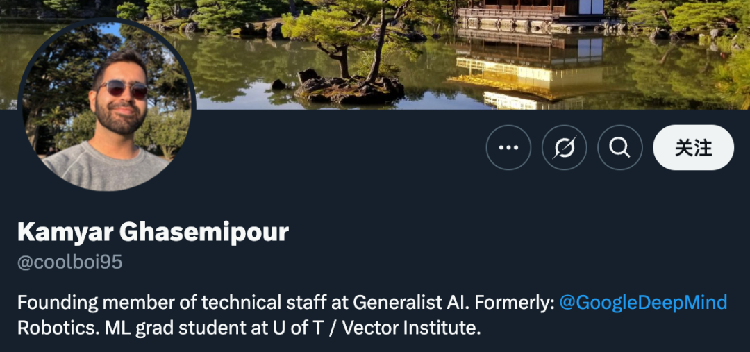 同为谷歌 DeepMind 机器人团队前成员的 Kamyar Ghasemipour,也加入了 Generalist AI 成为创始成员。