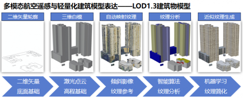 利用多模态数据的优势,可以在简化和轻量化的基础上进一步提升真实性和丰富度。利用激光点云辅助生成高精度建筑物模型,利用倾斜影像映射参考纹理,通过对纹理进行分析,便能得到更加贴近现实的模型纹理,让表达更加真实。