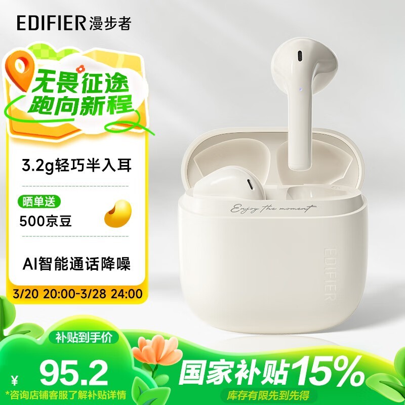 EDIFIER漫步者花再ZeroAir无线蓝牙耳机京东好价仅95.2元
