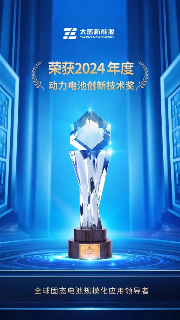 快科技3月20日消息,2024锂电行业年度颁奖典礼昨日在深圳举办,太蓝新能源荣获“2024年度动力电池创新技术奖”。