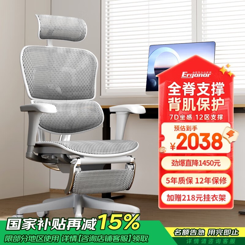 Ergonor保友金豪B2代人体工学椅躺舒宝银白色款促销
