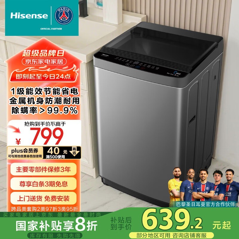 海信全自动波轮洗衣机HB105DC59大容量除螨洗仅552元