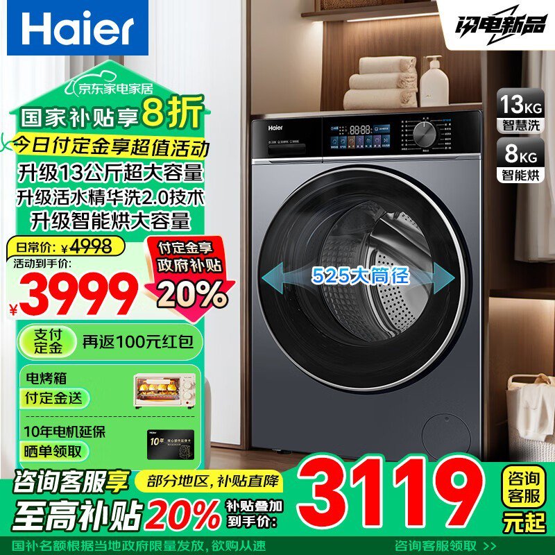 海尔XQG130 - HLE53E洗烘一体机京东优惠价3102元