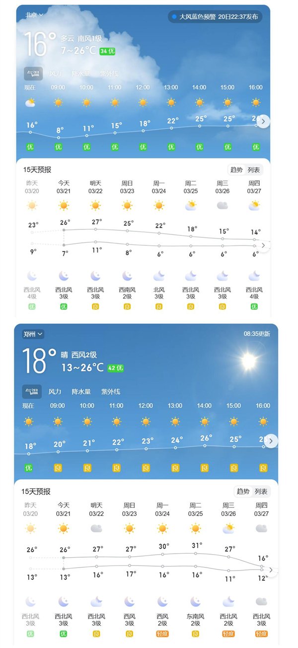 具体来看,从3月20日-3月26日,中东部气温屡创新高,北方普遍在22-25日达到气温高点,江南、华南有所延后,集中在25-26日。