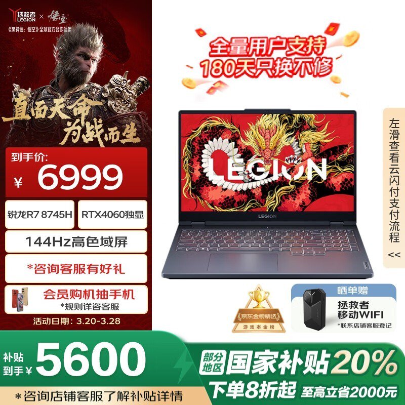 联想拯救者R7000游戏本 AMD锐龙7 8745H处理器 RTX4060