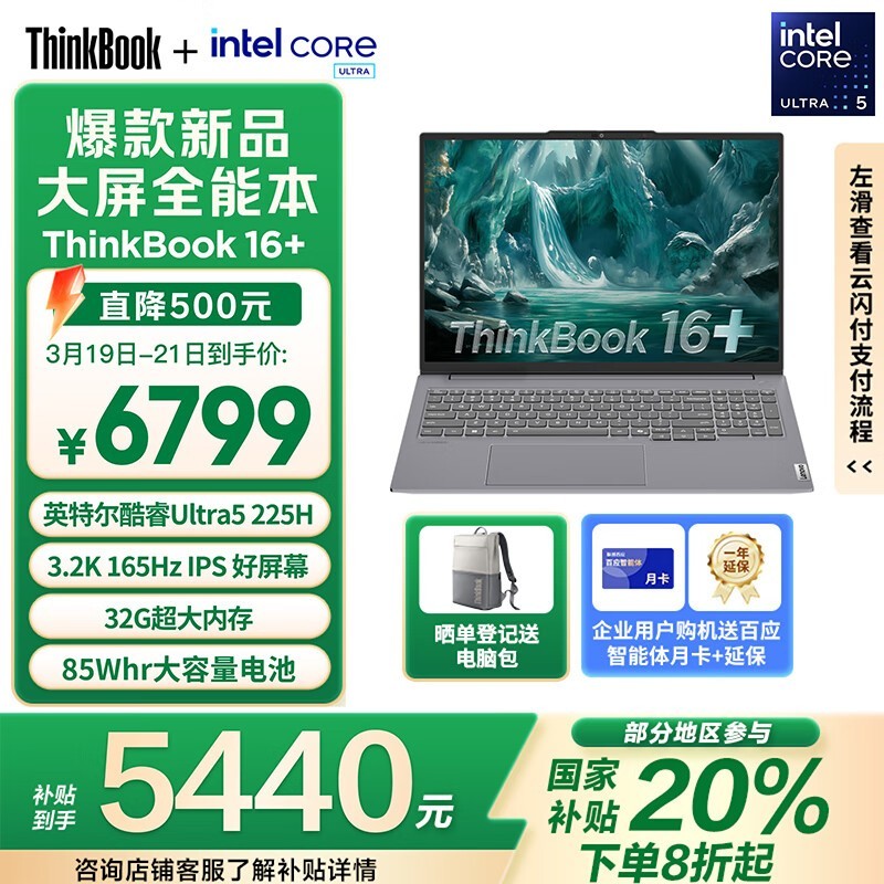 ThinkBook16+ 2025笔记本京东优惠价5412元