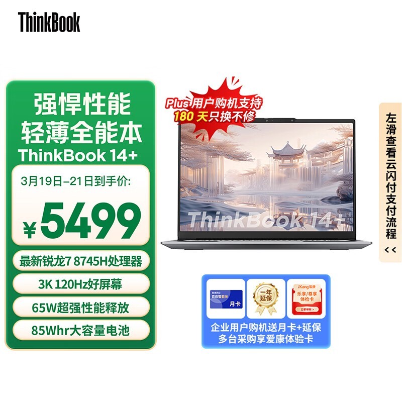 全新2024款ThinkPad ThinkBook 14+八代锐龙版京东特惠仅4369元