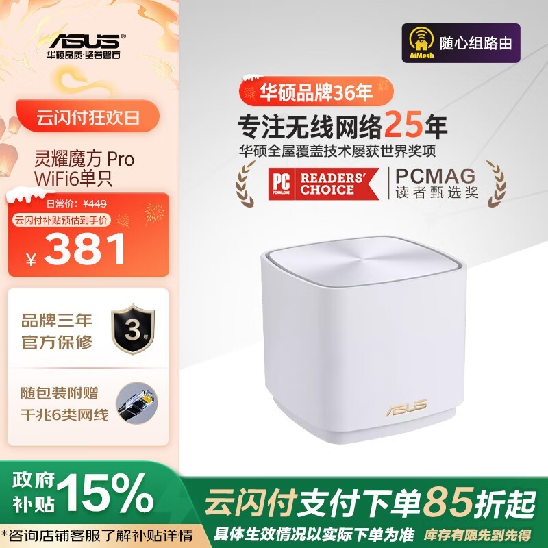 华硕灵耀AX小魔方Pro路由器京东促销价317元