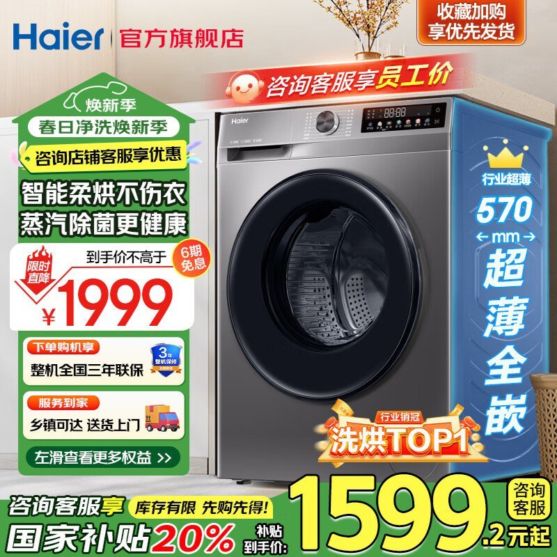 海尔XQG100-H507S洗烘一体机10公斤超薄款促销信息