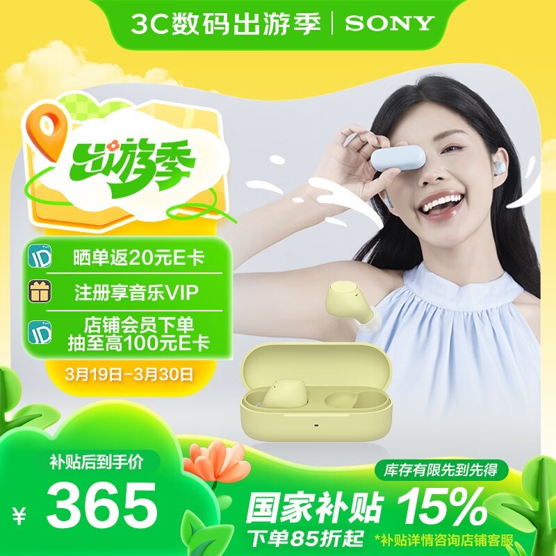 索尼WF - C510黄色款蓝牙耳机促销价365元