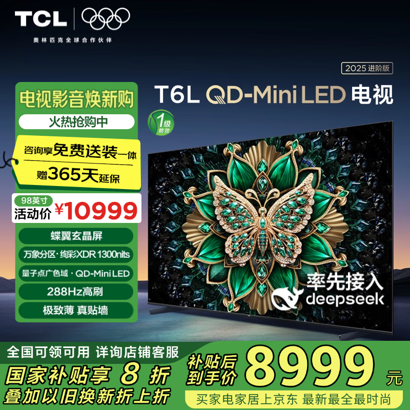 TCL 98T6L QD-Mini LED电视震撼促销低至7095元