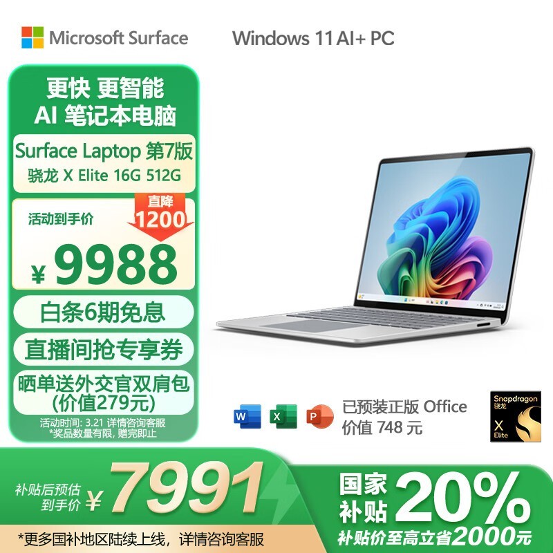 Microsoft Surface Laptop第7版促销,到手价7991元