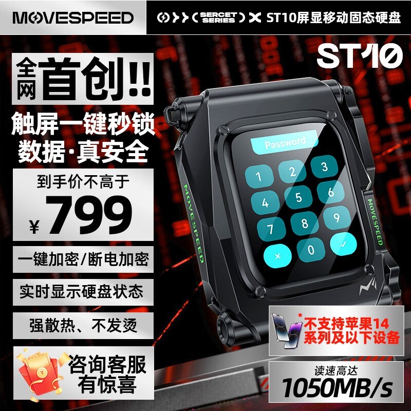 移速Secret系列ST10固态硬盘USB3.2屏显Type-C接口1TB仅799元