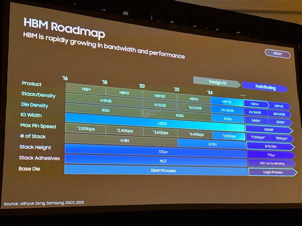 三星这次展示的HBM4密度也是单Die 24Gb,单颗容量则有36GB(12堆叠)、24GB(8堆叠)两种,不如SK海力士。