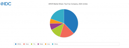 据悉,截至2024年12月,XREAL全球累计出货量已突破50万台,刷新消费级AR硬件单品牌出货纪录。根据权威市场研究机构IDC最新发布的《AR/VR头显市场季度追踪报告》显示,XREAL不仅成为全球消费级AR市场的领头羊,更以市占率优势超越Viture、TCL(雷鸟)及Rokid的总和,稳居行业第一。此外,XREAL也是VR/AR市场TOP5中唯一的AR厂商。