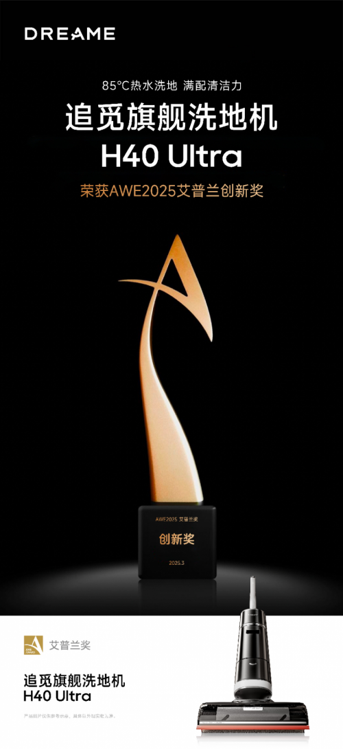 艾普兰奖由中国家电与消费电子博览会(AWE)创办,被视为家电与消费电子领域最具影响力和公信力的产品评选活动。其评审标准严苛,评选出的产品代表了年度行业新品的高水准和最新技术走向。追觅H40 Ultra洗地机能够获奖,充分证明了其在技术创新和用户体验方面刷新行业标准,重塑智能清洁产品新标准。