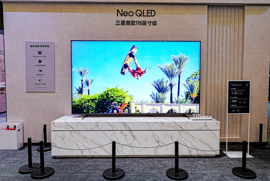 115英寸的QN90作为全场最大的MiniLED电视,它的尺寸是65英寸电视的两倍,带来前所未有的巨幕视听体验。这款电视不仅是三星4KNeo QLED系列的旗舰产品,更搭载了多项顶尖技术,重新定义了大屏电视的画质标准。