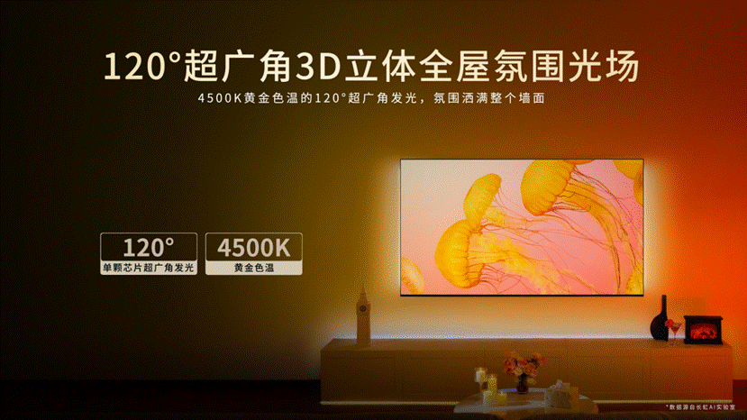 所谓AI光翼,它是长虹光学科技的集大成者。因为它拥有极为丰富的光学黑科技,无论在较暗的卧室或者较亮的客厅,都能带来更好的环境光补偿,实现更好的观影条件,也更加的呵护双眼。除了性能外,这款光翼颜值也是非常漂亮,每一颗光电芯片都能实现120°超广角发光,并且色温柔和,色彩可以洒满整个墙面、整个空间,营造3D立体全屋氛围光场。更有趣的是光翼的色彩和呈现还能与音乐联动,并且光翼的色彩和模式都能自由组合、随心设置。如果把电视拟人,那追光系列Q10 Air就像一位治愈系的光影魔法师,而AI光翼就是它的魔法棒,能用色彩渲染气氛、放大情绪、治愈人心。