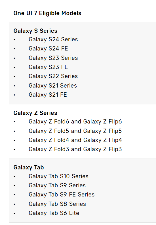 支持升级One UI 7的设备名单: