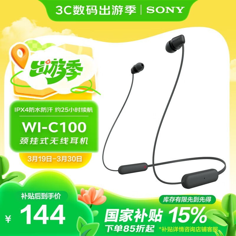 索尼WI - C100蓝牙耳机京东促销,到手144元