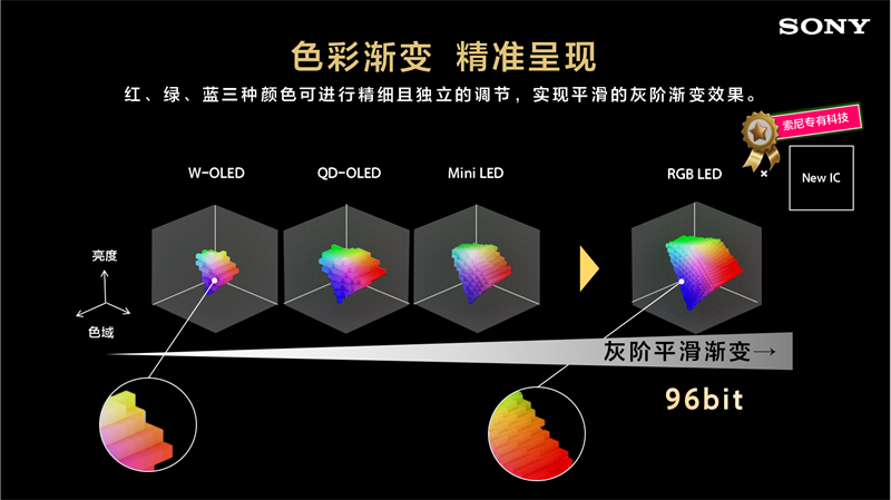 同时索尼为RGB高密度LED背光系统开发了专用控制芯片,可以准确描绘出光线的细微差别。新技术的处理能力极为强大,并配备了像素校正技术,能够再现像素级别的微妙色彩差异,且不会出现色彩偏移。