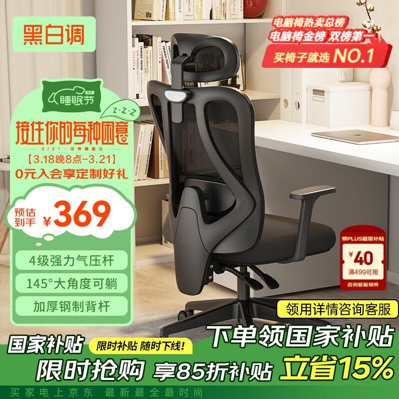 黑白调P1电脑椅仅275元享人体工学舒适体验
